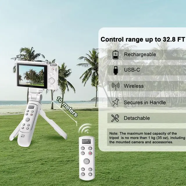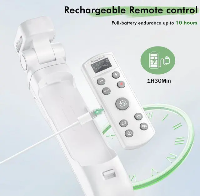 OLED screen: It clearly displays battery power, function settings, and connection status for intuitive control. Hanpusen tripod grip with remote control can be used as a stable tripod or a portable selfie stick, supporting adjustable shooting angles (overhead, vertical or horizontal shots), suitable for vlogging, live streaming, and content creation. ^^ Detachable smart remote control with advanced shooting functions: Easily switch between focus and zoom modes using the Z/F button on the remote control to achieve autofocus and precise zoom adjustment. Equipped with C1/AF-ON button to directly activate corresponding camera functions, supporting instant shooting, video recording, and other functions.