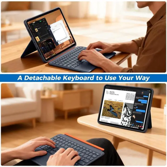 ^^ Magnetic Detachable Keyboard: The powerful magnetic design instantly combines the keyboard and case into one, transforming your iPad into a productivity laptop anytime, anywhere; Detach to use the case as a sturdy stand and the keyboard independently, offering flexibility for work and entertainment. ^^