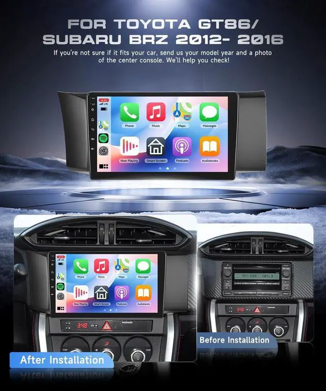 Subaru BRZ Upgrade: This car stereo radio is suitable for Toyota GT86/Subaru BRZ 2012 2013 2014 2015 2016. If the wiring harness does not fit your car, please do not rush to return it. You can send us a photo of the interface on the back of the original radio and we can replace it for you. ^^