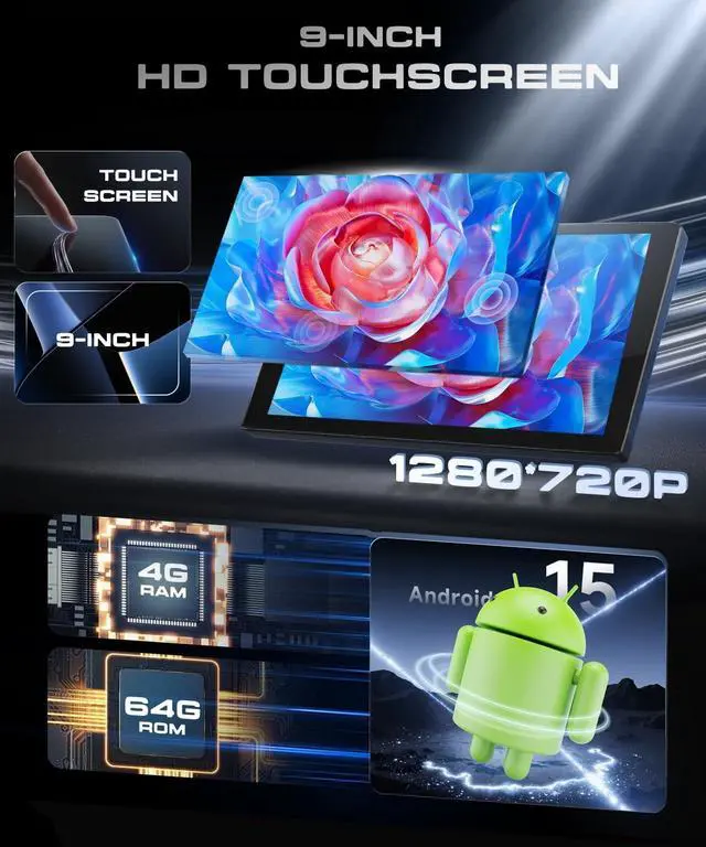 Wireless CarPlay/ Android Auto: For Toyota GT86 upgrade replacement car radio is compatible with wireless CarPlay and Android Auto, through Bluetooth connection, you can use this large-screen car audio to easily navigate, make hands-free calls, send and receive messages, and you can also use the voice assistant ^^ Android 15 system, 4GB RAM+64 GB ROM 9-inch 1280*720 HD touch screen. It has dual USB ports, customizable UI, supports wireless mirroring connection and split screen, allowing you to operate more smoothly ^^ AHD Backup