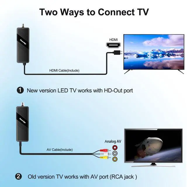 *Note: Not compatible with TVs that only have an RF input. ^^ You can play video, music and view photos, or recorded TV shows from your USB storage device. Real-time DVR recording of digital converter box allows you to record TV shows for future watch, timer setting can be scheduled recording at any time you want. (Incompatible with streaming programs) ^^