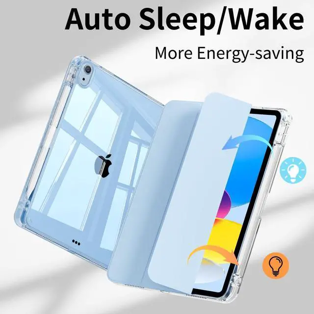 Auto Sleep/Wake Function: The slim iPad case 10th generation supports auto sleep and wake feature, open or close the case, wake up the tablet or put it into sleep, save battery power and extend the use time. Precise cutouts support Touch ID functionality, and easy access to buttons, ports, speakers and more ^^ 2