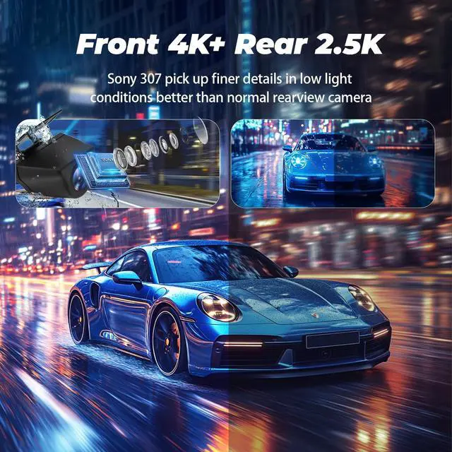 Rear 2.5K: Rearview mirror camera supports front 4K 170+ rear 2.5 k 150 wide angle shooting, covering multiple lanes, reducing blind spots. it provides full coverage of the vehicle and its surroundings for maximum safety and protection ^^ Large