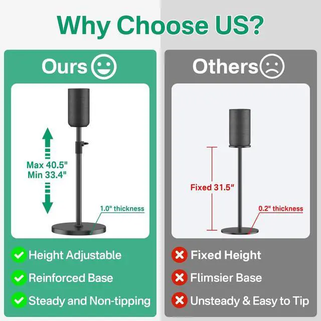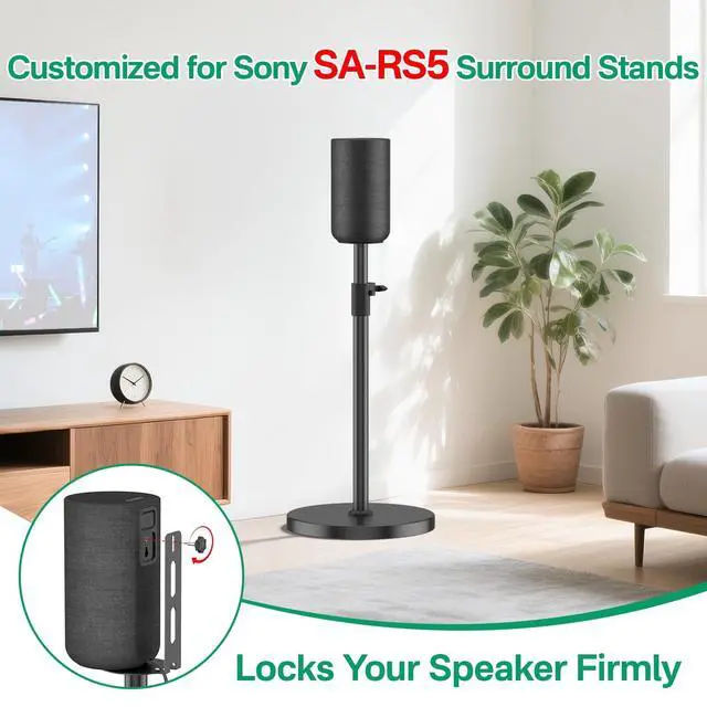 Perfect for Sony SA-RS5 - This floor speaker stand is expertly crafted to be a perfect fit for Sony SA-RS5 rear speaker stand. It ensures seamless integration with your sound system, providing a stable and secure platform for your speakers. Designed to enhance your listening experience, this stand is the ideal accessory for your audio setup. ^^ Adjustable Height for Comfort - For Sony SA-RS5 surround speaker stand, you can easily adjust the stand from 33.4 inches to 40.5 inches using a simple knob, with no tools required. Whether you prefer your speakers at ear level or a higher placement, this stand makes it effortless to customize for your personal listening preferences.