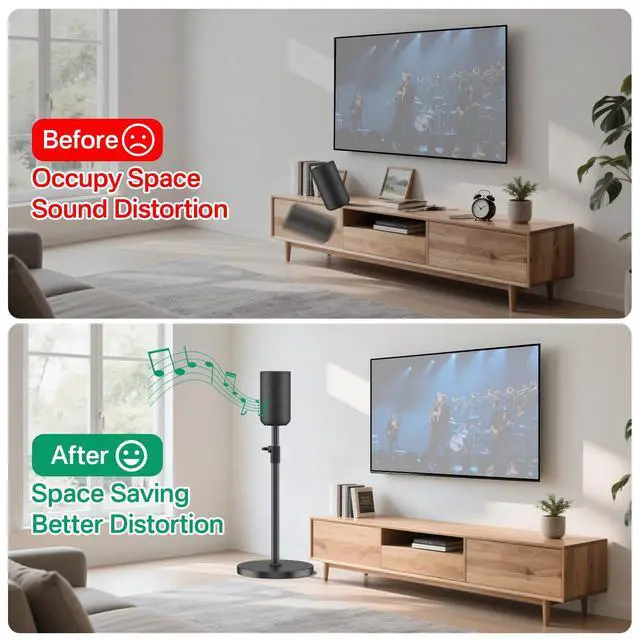 ^^ Cable Management System - Say goodbye to tangled cables! This adjustable speaker stands features a large cable management hole ( 2.17 inches high x 1.2 inches wide), allowing you to hide unsightly wires and keep your setup looking clean and tidy. With this thoughtful design, you can maintain an organized and clutter-free space. ^^ Stable and Secure Design - Built with quality metal and a reinforced circular base, this heavy duty speaker stands for Sony SA-RS5 surround sound speakers offers remarkable stability and durability. With a weight capacity of up to 30lbs, it can securely hold your speakers without risk of tipping.