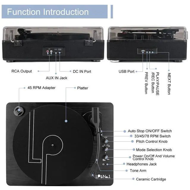 No computer or software needed. USB flash drive or 3.5 mm Aux-in through our built-in speakers. RCA audio output allows the turntable to connect to external speakers for even bigger sound, and the headphone jack allows you to enjoy private listening. ^^ Respond24 hours one-on-one service, any questions about our LP player, please feel free to contact us
