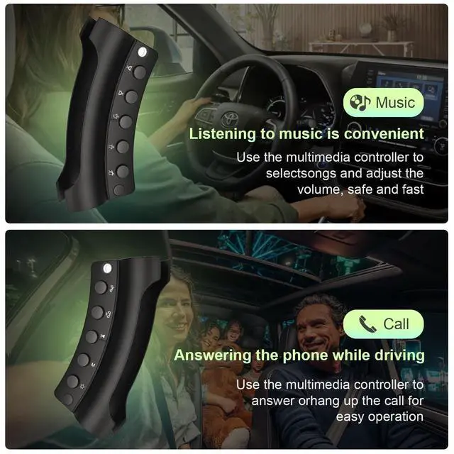 You can fix the remote control on the steering wheel by adjusting the screws or place it in a convenient location. When any button is pressed, the signal indicator light on the head will light up for a few seconds, representing that it has completed a job, which can let you know at a glance when driving at night. ^^ Able to work for 3 monthsIn order to ensure the longevity of the steering wheel remote control, the head indicator does not stay on for long periods of time, and under normal conditions of use, it will usually work for about 3 months or even longer.