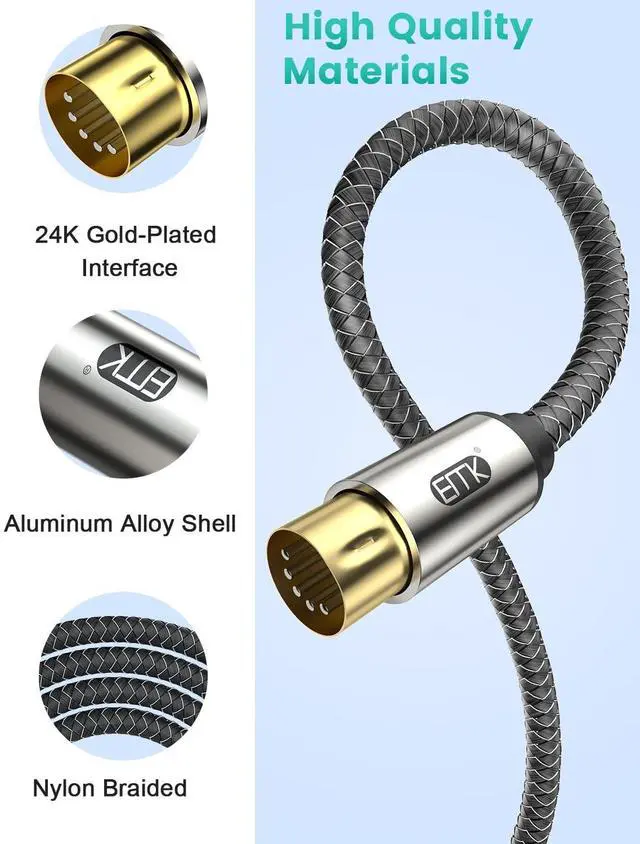 Enjoy universal compatibility with EMK's premium 5-pin DIN braided MIDI cable - seamlessly connect MIDI keyboards, controllers, synthesizers, sequencers, drum machines, audio interfaces, mixers, effects processors, and stage equipment for flawless performance in studio recordings, live shows, and music production setups ^^ Engineered for professional performance, this standard 5-pin DIN braided MIDI cable supports simultaneous 16-channel data transmission to multiple devices, featuring a secure 180-degree pin configuration with locking connectors that prevent loosening during live performances, ensuring rock-solid signal stability and uninterrupted audio transmission for your critical music production needs.