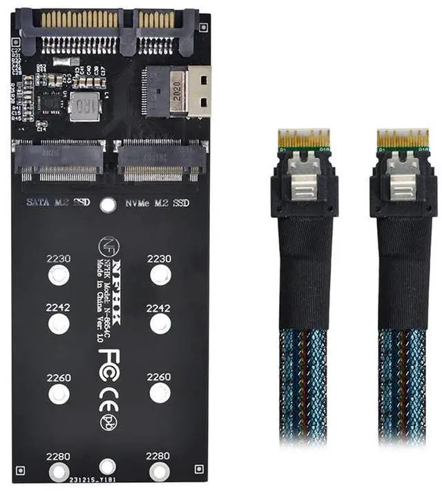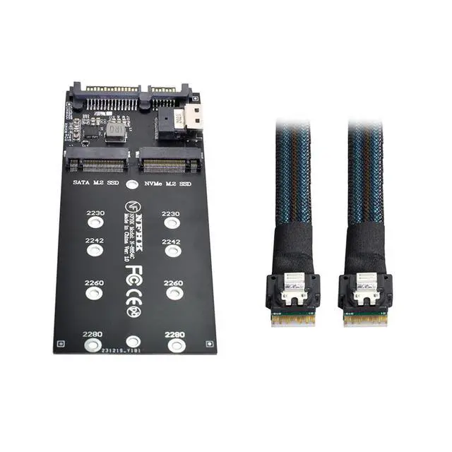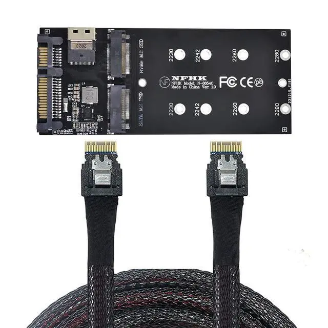 SFF-8654 Cable & Card U2 Kit NGFF M-Key to Slimline SAS NVME PCIe SSD SATA Adapter for MainboardThe package included one cable and one card. Supports M. 2 modules in format 2280, 2260, 2242 and 2230 with key B or key B+M based on SATA or PCIeHyper Kit Storage controller, Ultra PCI-E Card (PCIe 3.0 x4), The card only work for PCI-E SSD. (Not work for SAS or Slimeline SAS HD) This U. 2 M. 2 converter enables two different usage applications. 1. One M. 2 PCIe SSD in 2280, 2260, 2242 and 2230 format can be connected and used as a replacement for a 2.5 HDD.