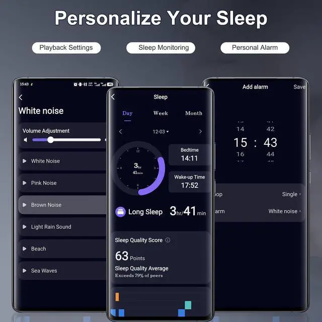 Smart Sleep Mode Create Your Own Quiet Night: Once Sleep Mode is activated, the sleeping earbuds automatically turn off voice assistants, call ringtones, and system notifications, allowing your night to return to true silence. Through the Zemyee Life app, You can choose your preferred white noise from the built-in white noise.