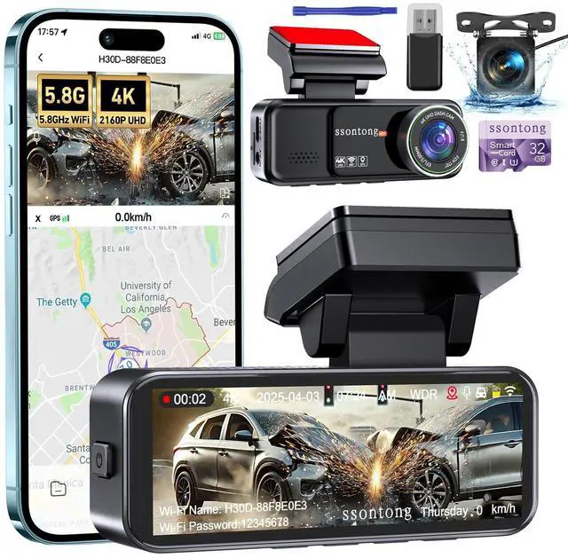This dash camera for cars allows you to capture every detail on the road, from license plates to road signs. With its wide-angle lenses, front dash camera has a 170 view, and rear car dash cam has a 140 view, providing comprehensive coverage and reducing blind spots. The dashcam is perfect for your needs ^^ Convenient WiFi and APP Control-The wifi dash cam front and rear built-in 5.8G WiFi, allowing you to easily connect it to your smartphone via the free "Viidure" APP. With a download speed of up to 10MB/S, you can quickly download and manage recorded videos.