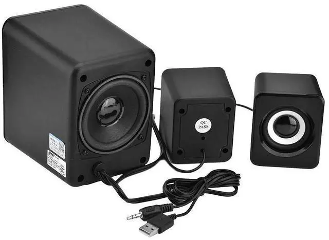 Description: This is a professional speaker with superior sound quaility, composed of 1 main speaker and 2 side speakers. This speaker will let out a steady and undistorted bass sound. And you can adjust the volume, bass and treble by rotating the knobs, this speaker will create different when playing different kinds of music. It may be a companion for your cellphone, tablet, laptop, or desktop PC!