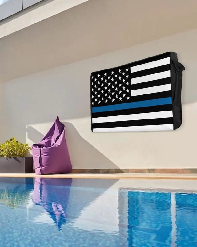 American Police Flag Outdoor TV Cover 60 to 65 Inches Weatherproof & Waterproof, Blue White Outdoor TV Enclosure with Remote Control Pocket, Law Enforcement Officers TV Screen Protector for Outside TV