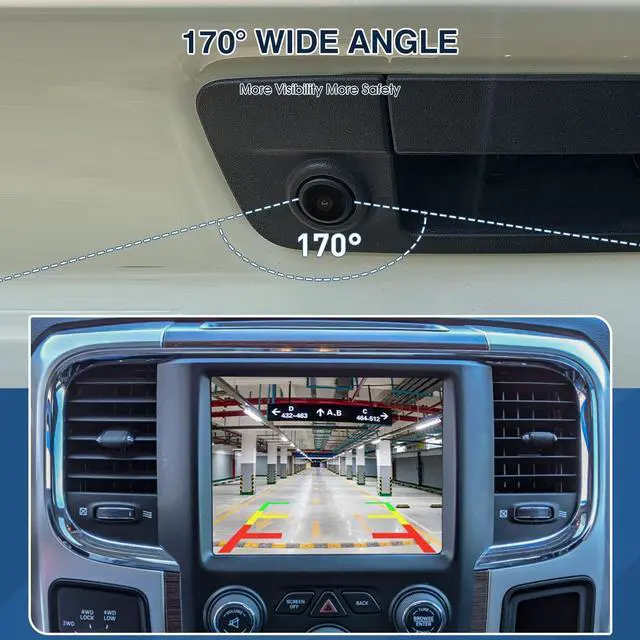 Factory OE Design]: Backup camera for RAM Can perfectly fit with the vehicle, show up the reversing tracking line for parking accurately; (The track line depends on whether your original car has). This accessories for RAM 2500 Improves rear-view visibility to avoid obstacles, reverse parking mishaps, and ensure safer driving.
