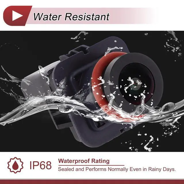 Function: Performs normally also as night vision license plate camera, with 120-180 Degree wide view angle, even in the faint light like a dark underground garage. Our park assist backup reverse camera is sealed with a waterproof rating of IP68. So it will not be affected in harsh environments like rainy days.