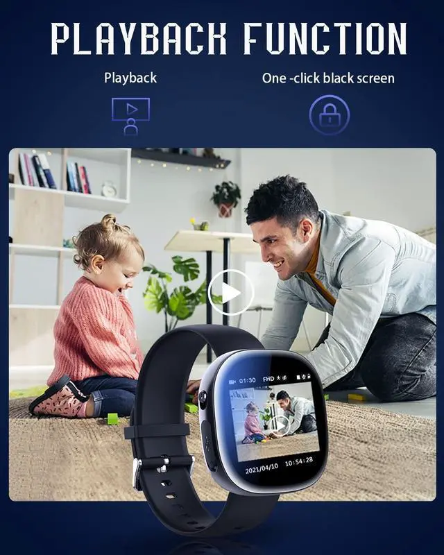 1080P Recording with Playback The hidden camera recording with HD 1080P. Spy camera with 30fps. This nanny camera is equipped with a HD screen. You can view the angle and orientation of the camera from the screen. After saving the videos, you can immediately play the recorded video files. No need to connect to the computer and mobile phone. ^^ Hidden design The spy camera with time and calendar. It can be used as ordinary watches, Built-in HD cameraVery hidden design. ^^ One -click recording, One -click lock screen.