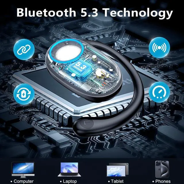 60H Playtime & Digital Display Each open ear Headphones can play continuously for at least 12 hours on a full charge, and the charging case can charge the earbuds an additional time, so you can get 60 hours of total playtime from a fully charged case. In addition, the smart LED Power Display in the case shows the remaining battery in real-time, so you can clearly know how much power is left in the case and whether it needs to be charged.
