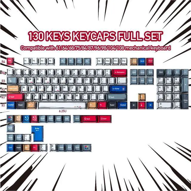 Ensure a better user experience. ^^ Widely CompatibilityThis keyboard keycap set consists of 126 keycaps, including 104 standard keys and 22 modifiers keys, compatible with most ASIN US and UK layout 61/64/68/84/87/96/98/100/104/108 mechanical keyboards.