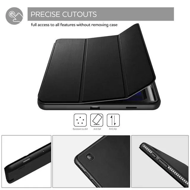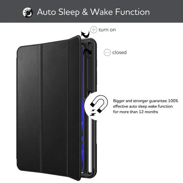 In addition to the shock-absorbing TPU back cover, SURITCH cases provide full protection for your S6 Lite. ^^ Magnetic Auto Sleep/Wake Function The smart flip case attaches magnetically, and you can easily fold it into different positions to create a stand for reading, viewing, typing or making FaceTime calls. It automatically turns on your iPad when opened and puts it to sleep when closed, which can extend your tablet's standby time and reduce battery power consumption. ^^ Precise Cutouts & Stylus Slot Our Galaxy S6 Lite tablet case comes with a stylus slot, providing a slot to store your S-pen.
