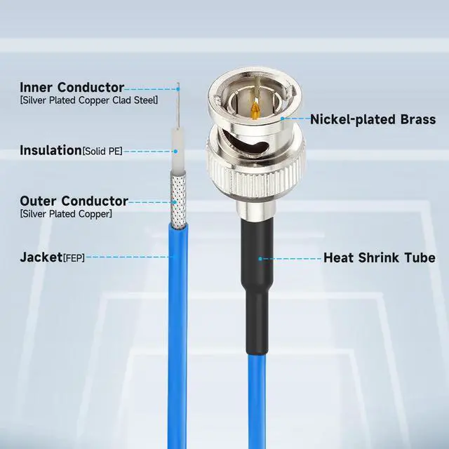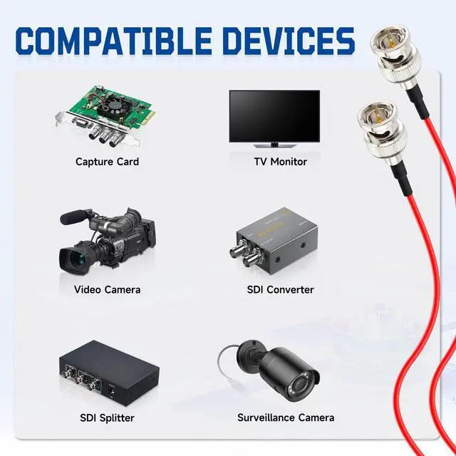 4-pack 3G/HD SDI BNC Cable 3ft 100cm Compatible with Magewell SDI USB Capture Plus - 32050, MOKOSE USH3001. The 75 OHM RG179 cable consists of a solid-center conductor, followed by dielectric insulation and braided aluminum shielding sandwiched between one layers of aluminum-foil shielding. The coaxial cable protects against EMI (Electromagnetic Interference) and RFI (Radio Frequency Interference), which can distort signals as they arrive to the receiver. With minimal line interference, the cable delivers crisp, clear sound and pure video. BNC connectors are manufactured in 50 Ohm and 75 Ohm specification versions.