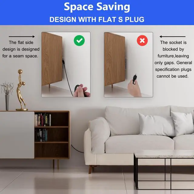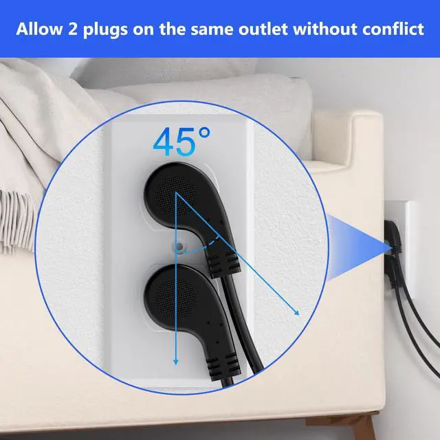 Why Choose Us: Features a fully molded design, offering exceptional durability----the robust and wear-resistant material provides excellent flexibility and resists aging over time----It also remains cool during extended use----With length options ranging from 1.5 ft to 50ft, our power cord caters to your diverse needs. ^^ Low Profile S Flat Plug Design: The 45 Degree Angled Plug is designed for using in spaces where standard plugs cannot be accommodated, such as behind household appliances, computers, monitors, tables, cabinets or anywhere near a wall. It also allows 2 Plugs on the same outlet without conflict.