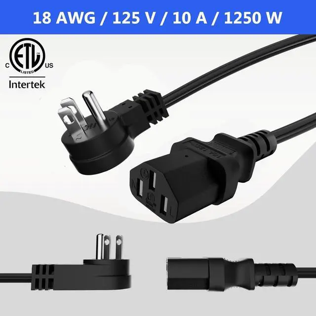 ^^ Superior Performance: ETL certified, meeting strict safety standards, our power cord is made from high-quality materials; featuring a heavy-duty 18 AWG wire with 100% pure copper, ensuring reliable and safe power delivery to your devices. The heavy-duty power cord includes a 3-pin shroud Female (IEC320C13) connector on one end and a 3-prong grounded Male plug (NEMA 5-15P) on the other end, supporting 125V, 10A, and 1250W.
