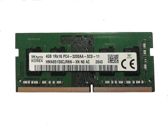 HMA851S6CJR6N-XNForm Factor 260PIN SODIMMTotal Capacity 4GBSpecs DDR4 PC4-25600 Unbuffered NON-ECC DDR4-3200 1.2VS eries SK HynixSpeed 3200 MHzVoltage 1.2VDIMM Type UnbufferedComponent for laptops and All-in-one PC`sSK Hynix DDR4 SODIMMs Product HighlightsSpeeds start at 3200 MT/sIncrease bandwidth by up to 30%Reduce power consumption by up to 40% and extend battery lifeFaster burst access speeds for improved sequential data throughputOptimized for next generation processors and platformsAvailable in modules up to 8GB and kits up to 32GB