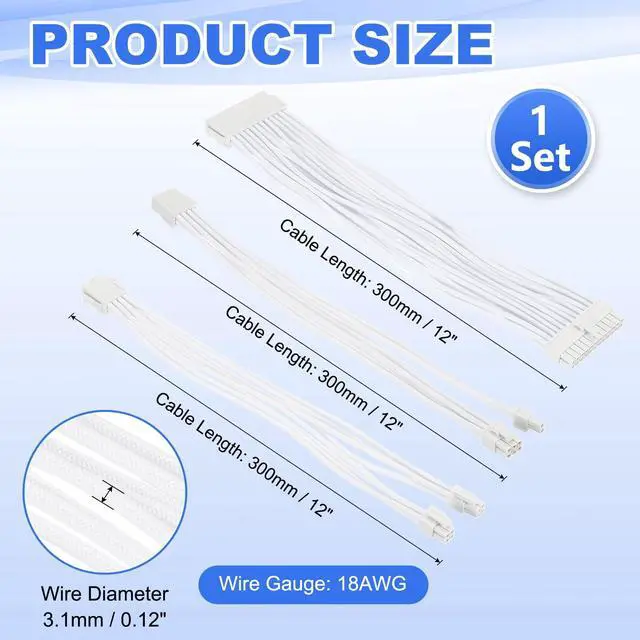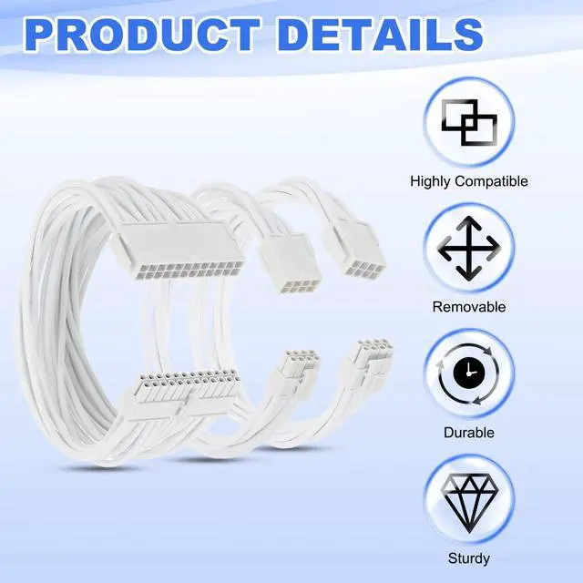 ^^ Instruction: Ensure the power supply is off and unplugged. Locate the power connector on the motherboard, align the cables connector, and push it in until it clicks securely. Organize any excess cable to maintain airflow, then reconnect the power supply and power on your system.. ^^ Application - This PSU cable extension sleeved Kit is designed for high-performance gaming and workstation PCs. It is suitable for users looking to enhance power management and aesthetics, optimizing cable management inside the case while providing a stable power supply to support the latest motherboard and graphics card configurations, ensuring reliable system performance.