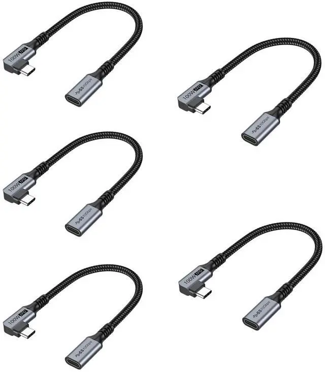 Short USB C Extension Cable 1FT 5-Pack, USBC Extender Right Angle Cord(100W/10Gbps/4K@60Hz),USBC 3.2 Male to Female for iPhone 16, Pixel 9, Galaxy S25, MacBook Pro/Air,USB-C Hub,Switch,PC