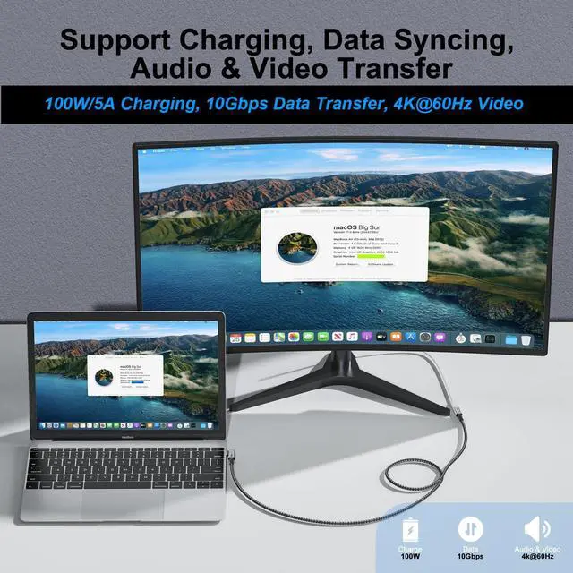 100W/10Gbps/4KThis USBC extension cable works perfectly for max 100W 5A fast charging and 10Gbps data transmission. Moreover, pure copper wire make sure its High-Speed charging and stable data sync; and supports video resolutions up to 4K (3840 x 2160@60Hz), Allowing you to enjoy high definition screen resolution in large moni