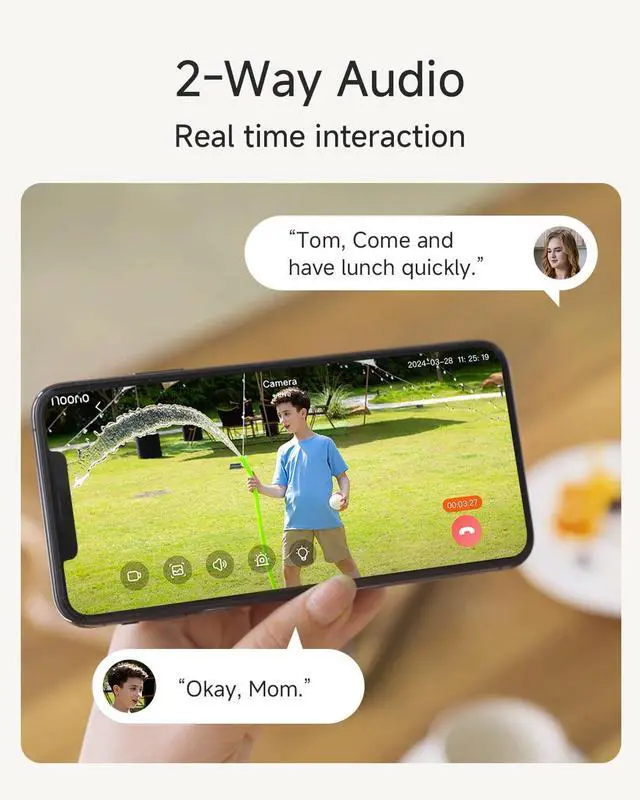 Get instant notifications sent directly to your phone, keeping you connected to your outdoor security camera at all times ^^ Clear 1080P HD Video & Color Night VisionNoorio B200-SE wifi cam delivers sharp 1080P HD video quality, capturing every detail day and night. With full-color night vision, youll see vibrant, clear images even in low-light conditions, making it an excellent choice for outdoor cameras for home security. (Only Support 2.4G WiFi) ^^ IP66 WeatherproofNoorio indoor wireless camera features IP66 waterproof design, built to withstand rain, snow, and heat, ensuring reliable performance year-round.
