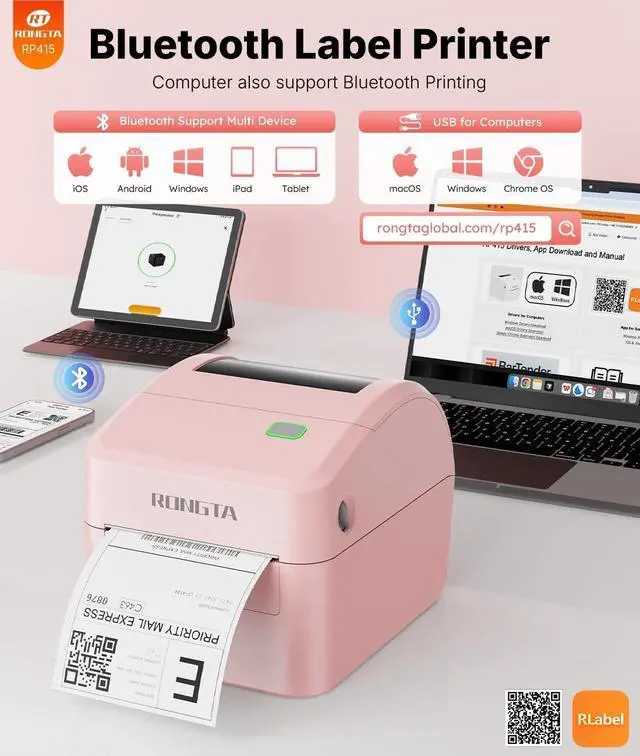 Bluetooth: Thermal shipping label printer boasts an advanced Bluetooth connection capability, seamlessly compatible with Android/iOS and Windows/macOS/Linux systems. Moreover, If you prefer a USB connection, the label printer for small business can also be connected to USB and is compatible with all major computer systems. ^^ Strong Helper for Commercial and