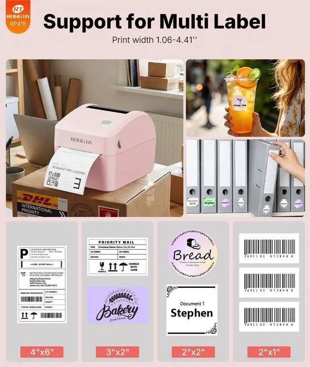 Home Use: This label printer can support the width of labels ranges from 0.78 - 4.6 inches, a label roll outer diameter of 4.75", very suitable for printing shipping labels, mailing labels, barcode labels, and all kinds of labels you want.