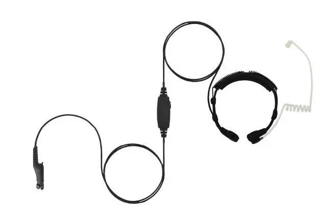 The Throat Microphone converts vibrations from the larynx into clear transmissions, and does not interfere with your gas mask, shroud or other protective gear. The integrated acoustic tube earpiece places your radios speaker in your ear for clear and private radio reception. The throat mic and earpiece are reversible allowing you to wear the headset comfortably with the earpiece in either ear. Transmit using the integrated push to talk button with clothing clip located on the wire connecting the headset to your radio. The Throat Mic headset for Motorola N70, N50, R7, N30, and MXP600 radios is an ideal choice for military, tactical, healthcare professionals, and recreational users requiring a highly versatile and simple headset.