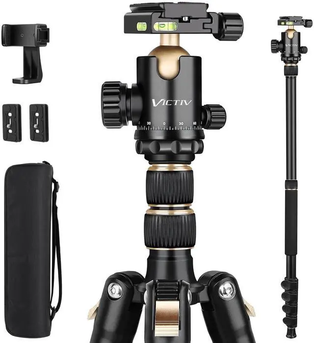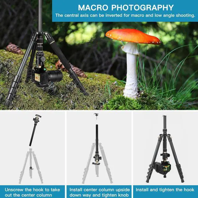 Stability & Sturdy Aluminum TripodProfessional Camera Tripod Stand Is Constructed From High-Quality Thickened Aluminum Alloy With 36mm Large Ball Head, Making It Exceptional Strength For Heavy Duty Work. Strongly Sturdy And Ultra-Stable. Detachable Non-Slip Feet Cover And Weight Hook Further Enhance The Overall Security & Stability Of Outdoor & Indoor Use, Even In Uneven Ground Or a Windy Day