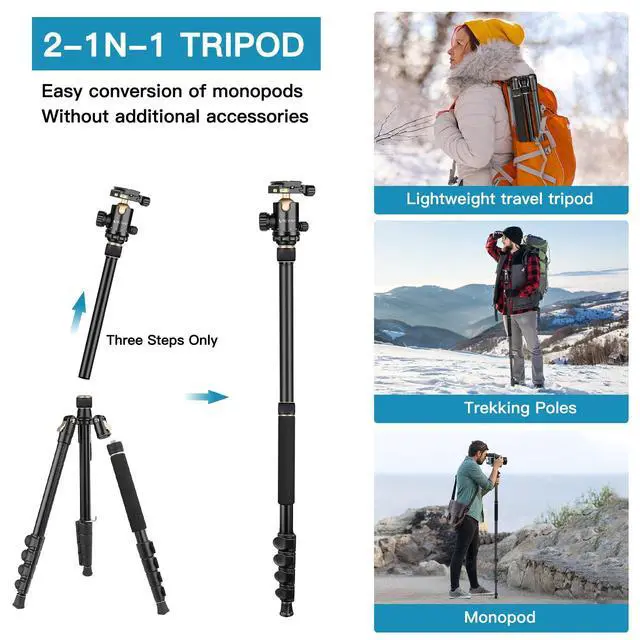 Compact Camera Tripods For Photography Tall Tripod For Camera Rises The Height From 30" To 72 (Extra Tube For Adding Height To 76" Inches ) And Folds Down To 18", Only 3.92lbs Weight, Lightweight And Compact Design Allows You To Carry Around Conveniently With Our Storage Bag Or Storage In a Suitcase. Suitable For Travel Photography