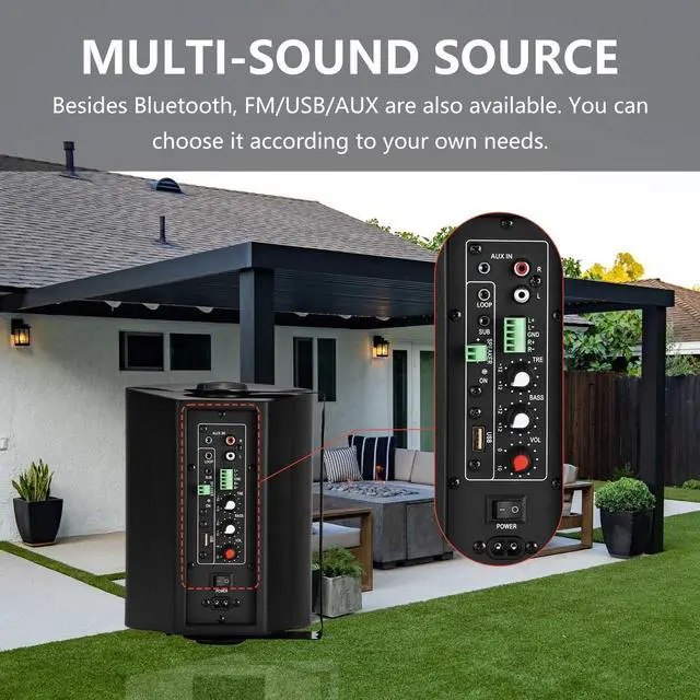BLUETOOTH CONNECTIVITY - Different from passive outdoor speakers, it features built in amplifer with Bluetooth. Any device with Bluetooth function can connect it which allows you to enjoy the music on your fingertips. ^^ MULTI-SOUND SOURCES - Besides Bluetooth, FM/USB/AUX are also available. You can choose it according to your own needs. ^^ POWERFUL BASS - These outdoor speakers' cabinet features bass reflex hole on the front panel. It allows these outdoor speakers to produce powerful bass sound with only 5.25 inch woofer. ^^ WEATHER RESISTANT - On the patio, by the pool, or on your yacht, the Dinnpaul 5.25 inch all-weather outdoor speaker pair lets you enjoy your music with no compromises.