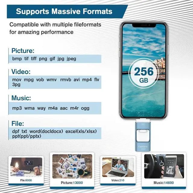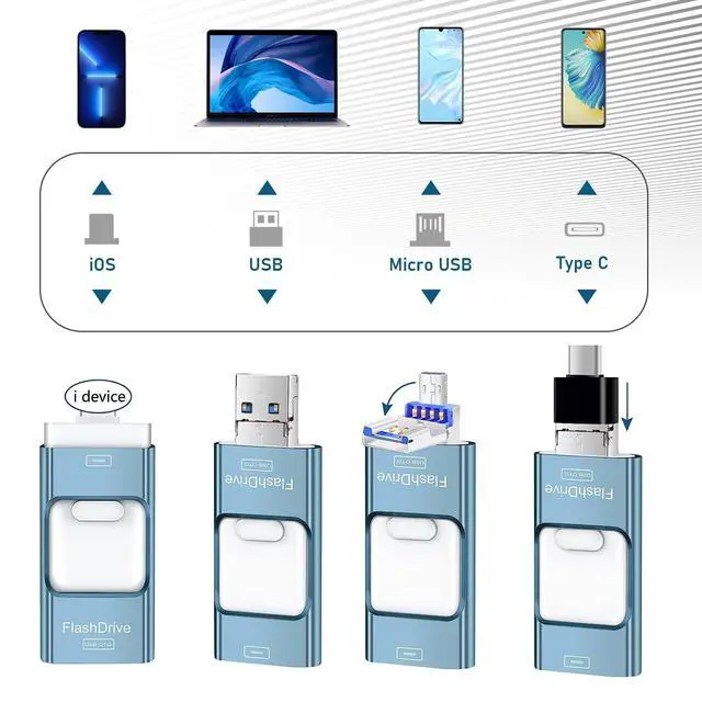 Characteristic: photo stick iOS Flash Drives for phone Memory Stick with 4-in 1 port to apply to more devices. Phone Flash Drive with Keychain Freely. Phone flash drive can watch most format videos, songs directly; Android Adapter Expansion Touch ID Encryption Pad External Storage drive can watch all popular format videos, songs directly from the phone flash drive Android wherever you are Delicate design as a gift for your friends