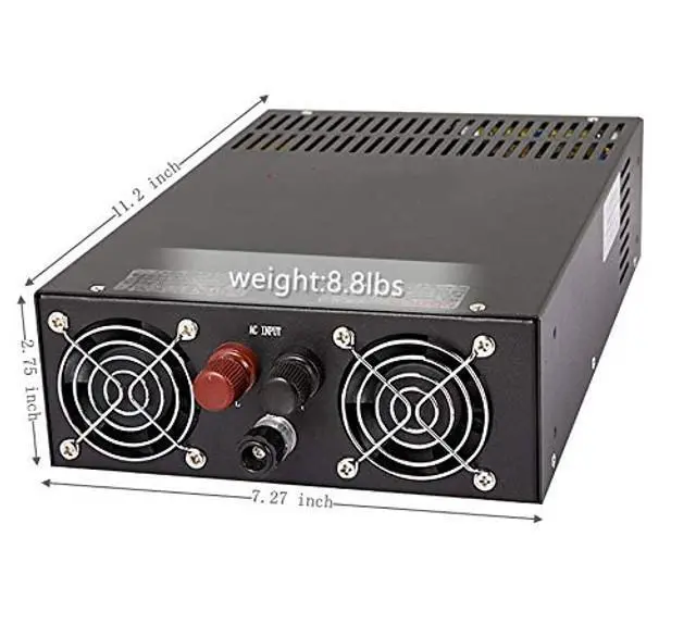 Universal AC input 110/220V slected by switch, 105C output capacitor, High efficiency and low operation temperature, soft-start current can reduce the AC input impact effectively.