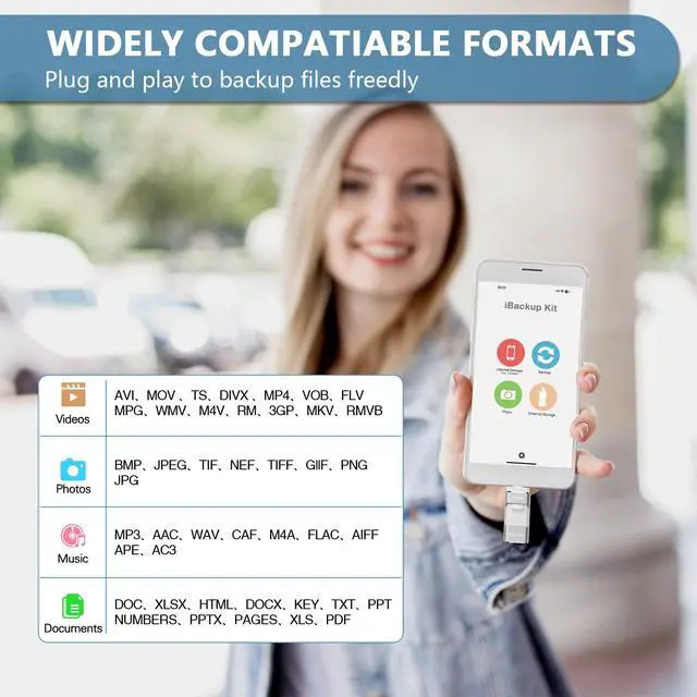 One Click Backup: Experience up to 80 MB/s reading and 40 MB/s writing speed, and photos, videos, documents can be backup to the 512gb flash drive with one click. The phone memory stick provides a simple and quick way to transfer photos and videos. Allows you to free up the memory on your mobile device without using a data cable or iCloud. With this phone photo stick, you dont have to worry about Phone storage anymore! Make file transfer easier. ^^ Thumb