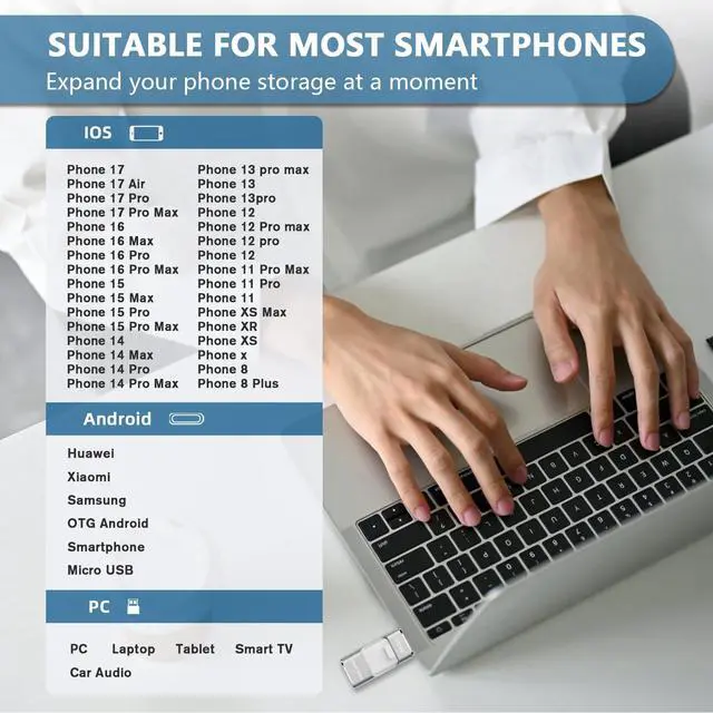 Supports More Devices: To use the photo stick on Phone/Pad, [No App Required] Android needs to turn on OTG function (No need to download APP). Multi-interface and excellent heat dissipation design ensure excellent performance and high transmission speed. You can transfer data between various devices and easily complete data sharing. ^^ Watch Video Directly and Share to