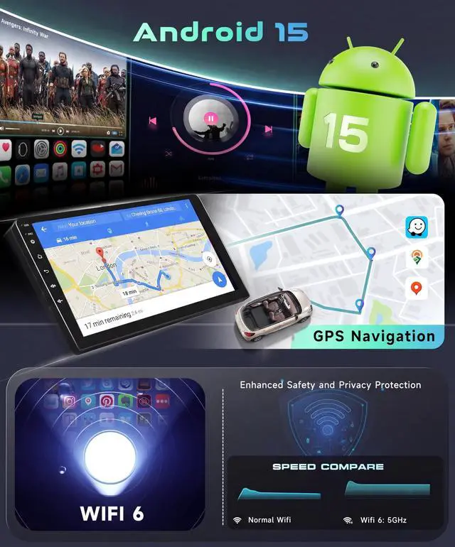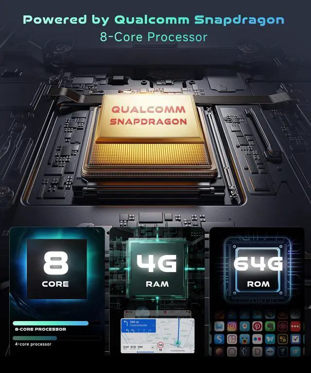 Processor: Equipped with Qualcomm Snapdragon processor, 4GB RAM, 64GB ROM, and an 8-core Android 15 system, this Android car stereo delivers high performance and low power consumption. Its fast, stable operation ensures smooth multitasking and quick app launches. Whether you're streaming music or using GPS, it runs effortlessly ^^