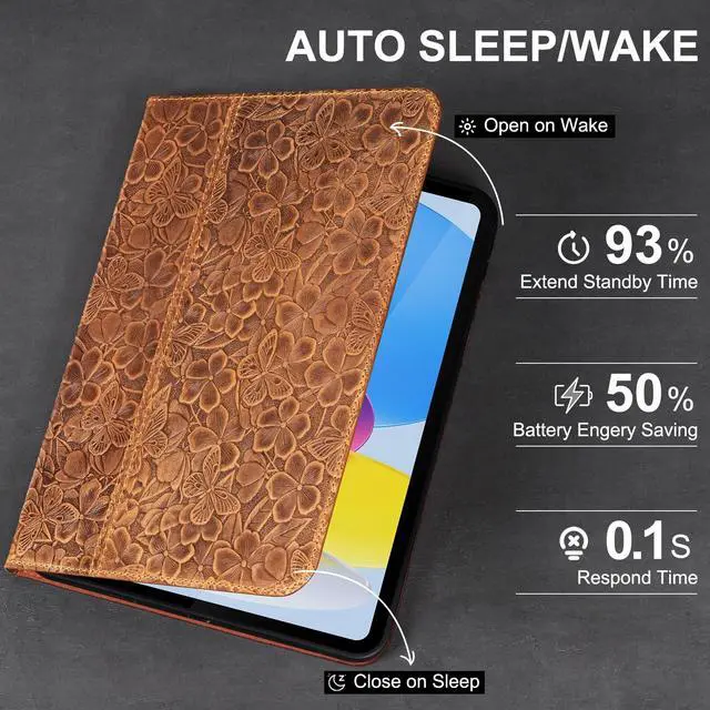 This iPad case is compatible with iPad (A16) 11th Gen. 2025 11 Inch, iPad 10th Gen. 2022 10.9 Inch. Full grain leather is chosen to made this. The surface of Vegetable-Tanned Leather is warm and moist, forming a unique patina with use, color changes with the passage of sunlight, oil and time. It is also functional, auto wake/sleep, adjustable stand, shockproof.