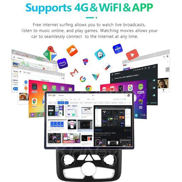 You can also download various apps in the app store, such as YouTube, Netflix, Facebook, etc., to enjoy the fun of surfing the Internet. ^^ Car Navigation GPS radio navigation for car search satellite strongly high-precision navigation and positioning GPS + GLONASS, Support Online and offline maps, Each of auto radio is born with a built-in GPS, God's Positioning System, Support Apple Maps, Google, Waze and other maps all in way that allows you to stay focused on the road. ^^ Rich Driving Experience Dodge Ram car radio MP5 player Supports BT and hands-free calling, FM Radio, USB, AUX IN, music player, video player, steering wheel control and back-up camera.