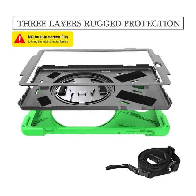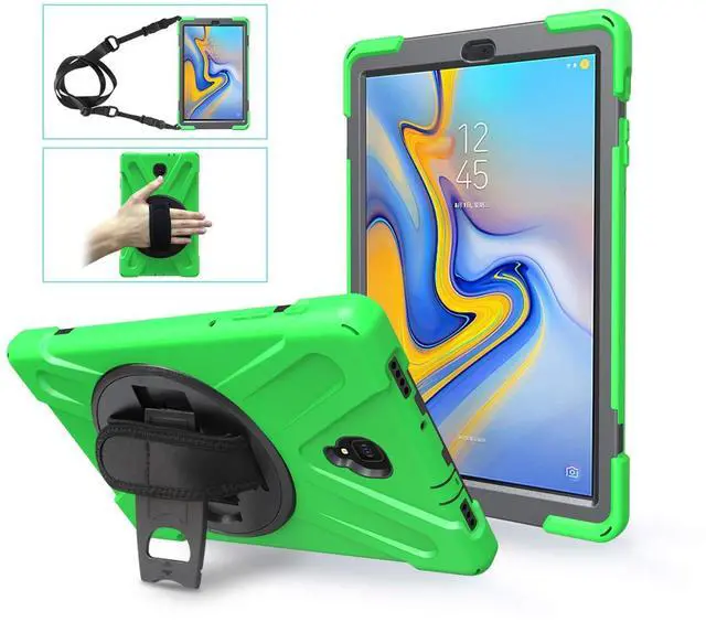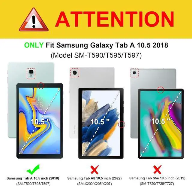 Note: WITHOUT Screen Protector. WITHOUT S Pen. Not compatible with Galaxy Tab A8 10.5" 2022 (SM-X200/X205/X207)/Galaxy Tab S5e 10.5" 2019 (SM-T720/T725/T727)/ Galaxy Tab S4 10.5" 2018 (T830/T837/T835). Please check the model number before purchase. ) ^^ Multiple Protection Hard PC front cover, PC back cover and durable soft silicone shell provide your for Samsung Galaxy Tab A 10.5" 2018 (SM-T590/T595/T597)full protection against falling and offer comfortable grip. It is not only shockproof/durable, but also comfortable hand feeling, which is definitely the best choice for your family and friends. ^^ Multi-functional Kickstand/Hand Grip - The 360 Degree rotating folding stand is stable enough on several different surfaces, ideal for watching videos, conferences, typing and travelling. The size-adjustable hook and loop grip can let you easily hold your tablet by one hand and rotate freely. ^^ Multi-function Shoulder Strap- Adjustable/Removable Shoulder Strap carries the Galaxy Tab A 10.5" 2018 (SM-T590/T595/T597) tablet vertically or horizontally on shoulders/behind car seat/on the wall/any other places for more convenient working/video viewing/video chat/entertainment. ^^ Precise CutoutsThe precise cutouts and design easily access to all buttons(speakers, volume button, charging port, camera).