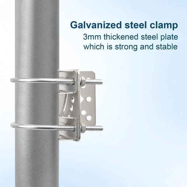 Heavy Duty -- The antenna pole bracket is made of 3 mm thick high quality galvanized steel, it can withstand harsh weather conditions, ensuring long-lasting performance. ^^ Adjustable Angle -- Antenna pole mount kits can adjust the installation angle to adapt to different angles of the room and plane. ^^ The whole set of accessories can be used for holding poles with diameters ranging from 1.1 to 1.97 in (30-50mm) ^^ Easy to install -- The antenna mast bracket comes with all necessary hardware and accessories, making installation quick and easy. ^^ This starlink pole mount can be installed on various locations such as rooftops and walls, providing users with versatile installation options.
