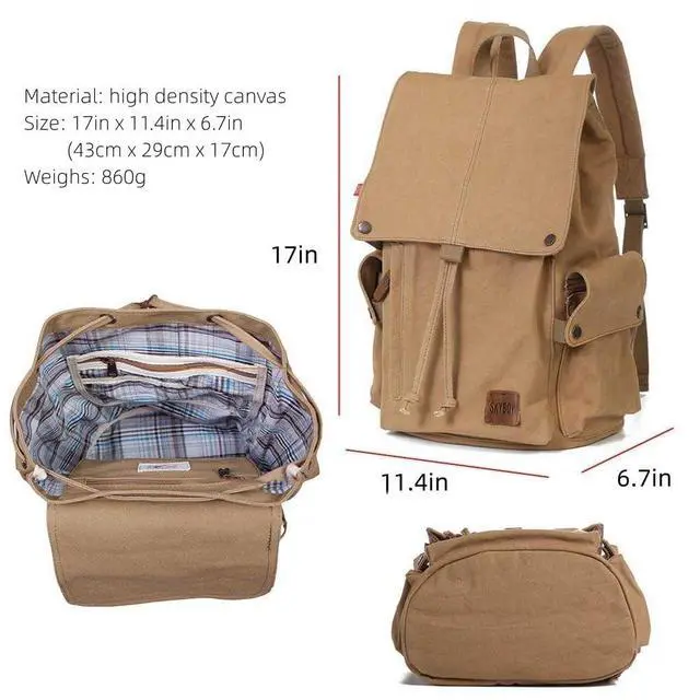 DescriptionCanvas Vintage Backpack Casual Outdoor Daypack Rucksack for Men Women 15.6 inch Laptop Hiking Travel Backpacks