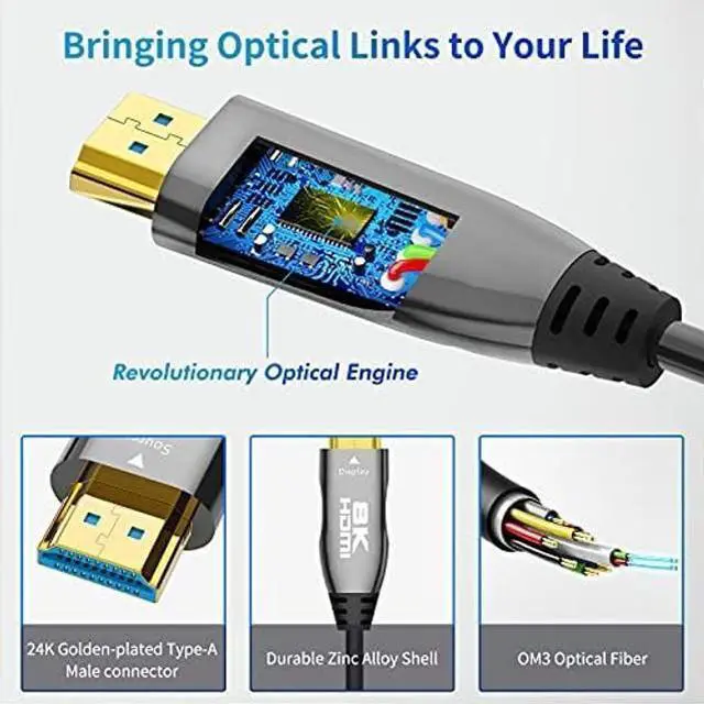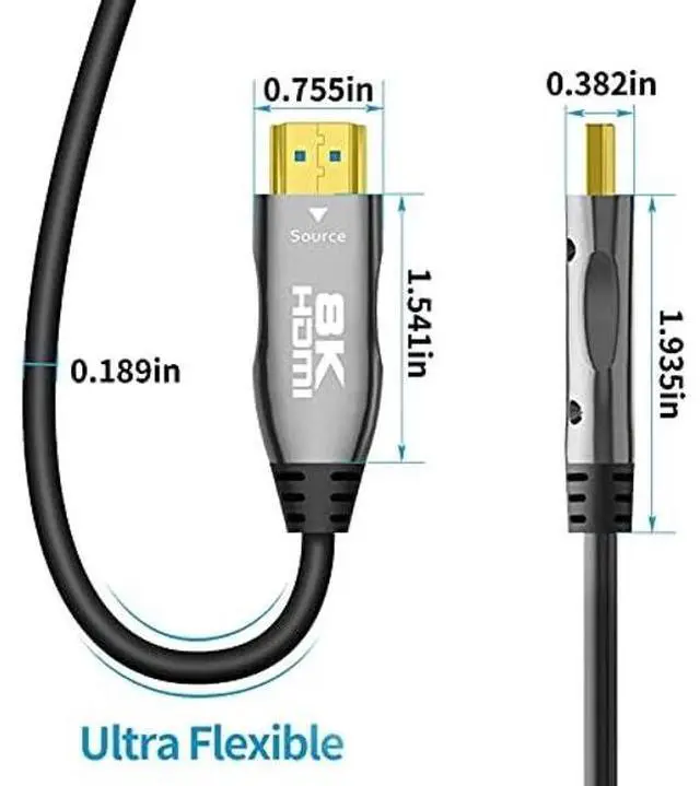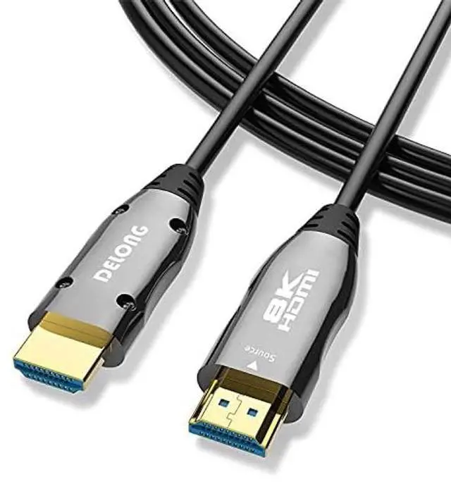 Delong 8K Slim Fiber Optic HDMI 2.1 Cable Wanna watch 8K@60Hz 4K@120Hz Video with zero signal loss Want to have a Slim and long HDMI cable for flexible wiring Delong 8K fiber optic HDMI 2.1 cables will take care of these requirement