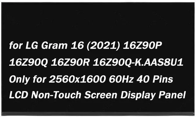 Compatible Model: Replacement for LG Gram 16 (2021) 16Z90P 16Z90Q 16Z90R 16Z90Q-K. AAS8U1 LCD Screen Replacement.