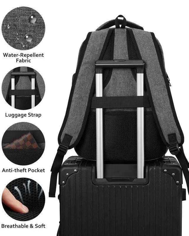 ^^ CONVENIENT: Luggage strap allows travel backpack slide over the suitcase upright handle tube for carrying. Anti-theft pocket on the back protect your valuables from thieves.